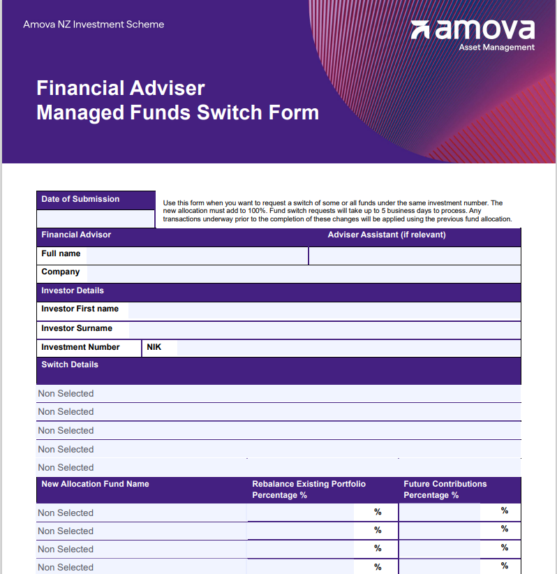 Here you'll find application forms, switch fund forms, redemption forms and more forms related to the Amova NZ Investment Scheme.